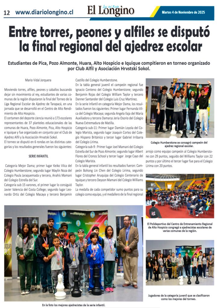 Liga Escolar 2025, Sin categoría El Longino – Entre torres, peones y alfiles se disputó la final regional del ajedrez escolar Written by jsilva on 4 de Noviembre de 2025
